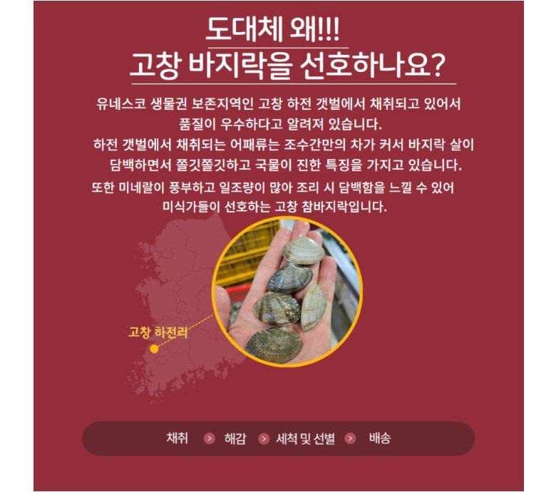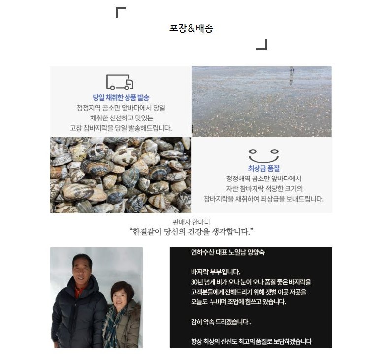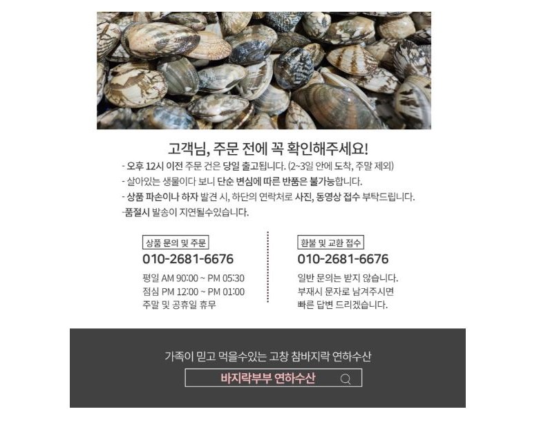 채취 환경에따라 패각색깔 또는 수율이 조금씩 차이가 있을수있으니 이점 참고 부탁드리겠습니다.