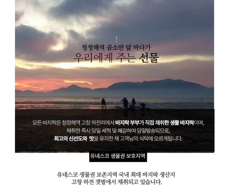 | 생산자(수입자) | 연하수산/(주)송일 | 원산지 | 전라북도 고창군 하전리 또는 중국산 |