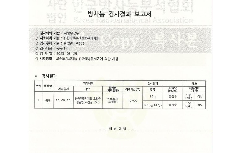 주기적으로 채취한 바지락 동죽 모든상품은 어장에서 채취한 시료를