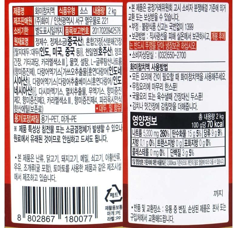 | 생산자 및 소재지 | 상품 상세페이지 참조 | 제조연월일, 소비기한 또는 품질유지기한 | 상품 상세페이지 참조 |