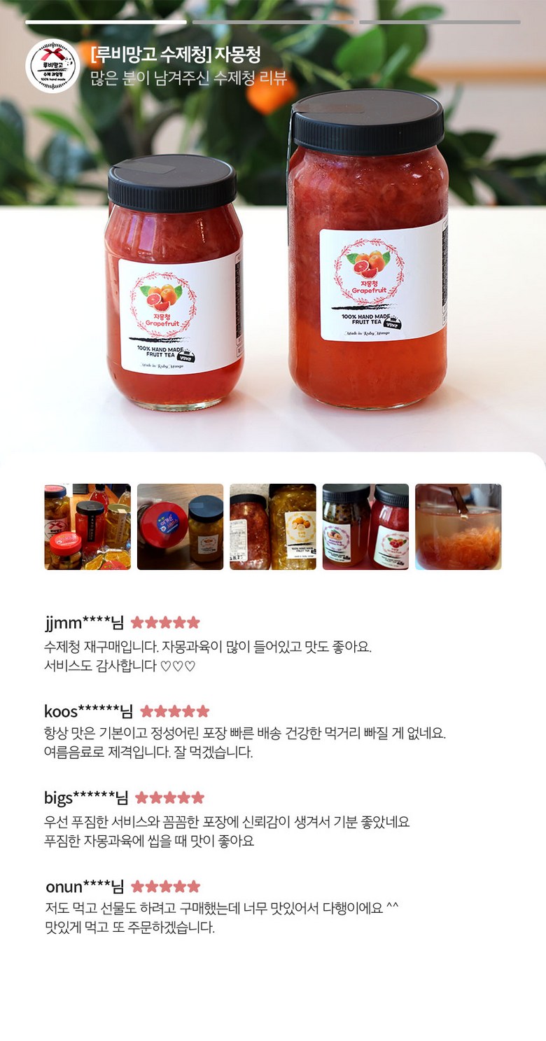 | 제품명 | 자몽청 | 식품의 유형 | 액상차 |