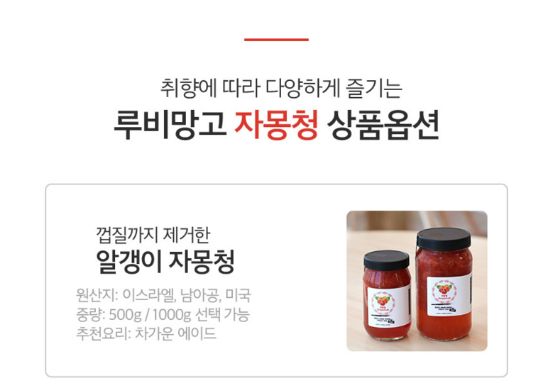 | 포장단위별 내용물의 용량(중량), 수량 | 500g / 1000g | 원재료명 및 함량 | 상품 상세페이지 참조 |