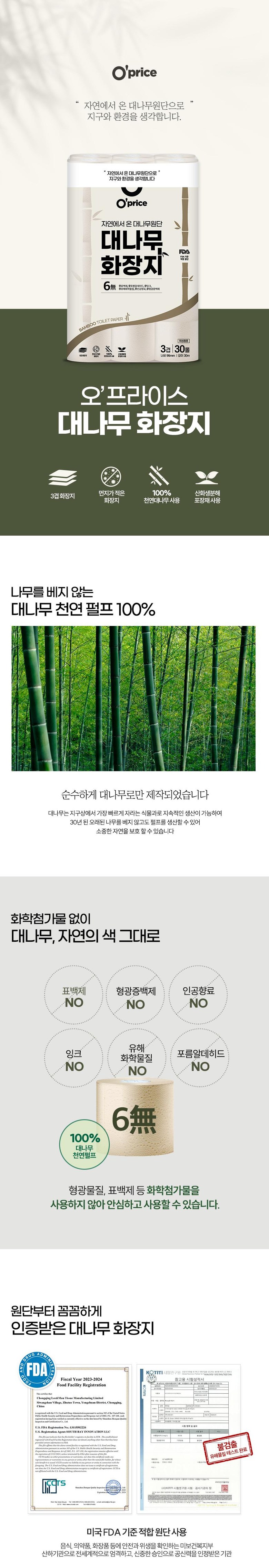 | 품명 및 모델명 | 오프라이스 대나무 화장지 30m 30롤 | 인증/허가 사항 | 상품 상세페이지 참조 |