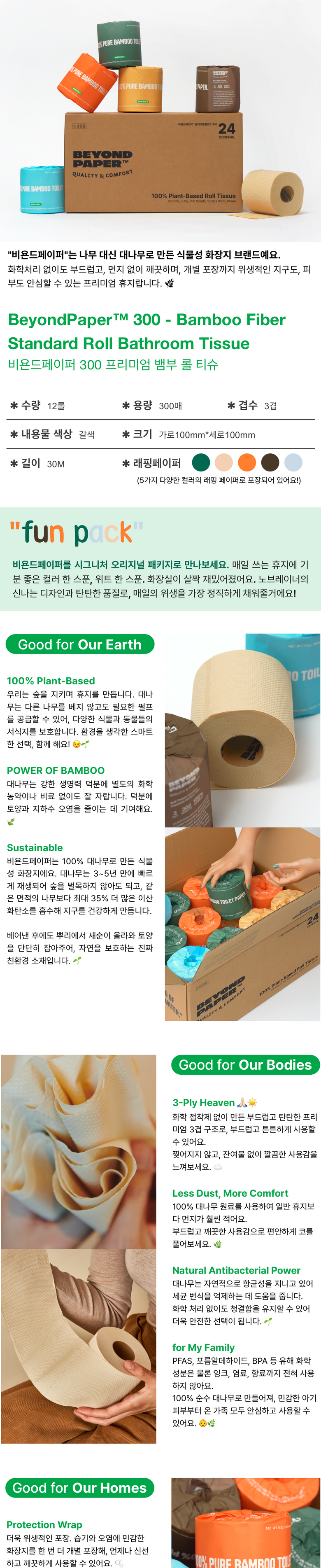 | 품명 및 모델명 | 비욘드페이퍼 퀄리티앤컴포트 300 24롤 | 인증/허가 사항 | 위생용품수입 영업신고 |