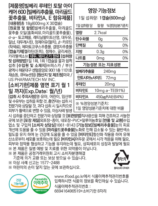 - 개당 용량/중량/정: 30캡슐