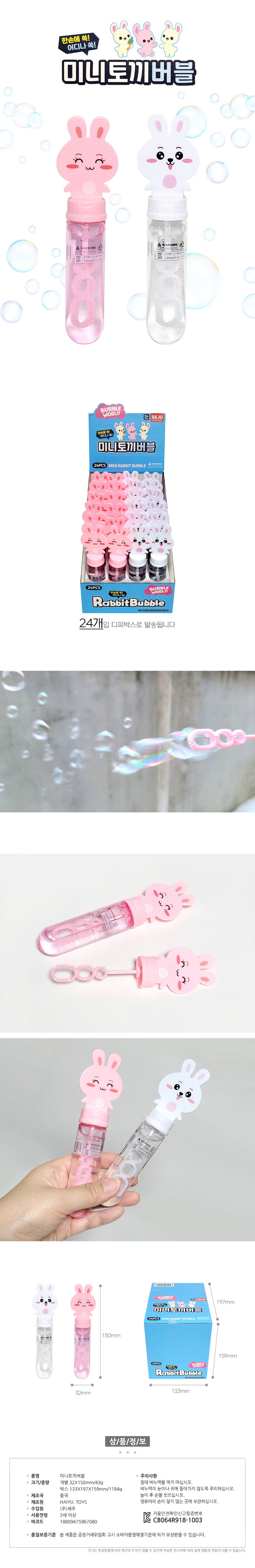 | 품명 및 모델명 | 미니 토끼버블 | KC 인증정보 | CB064R918-1003 |