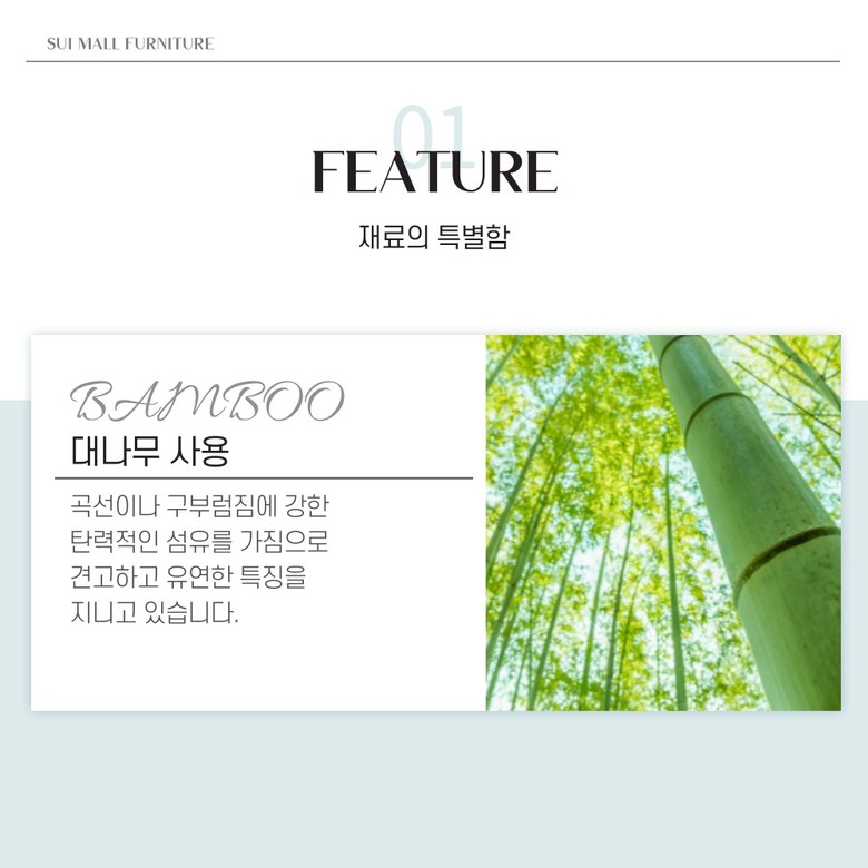 | 주요 소재 | 대나무 | 제조자(수입자) | 수이몰 협력사 (수이몰) |