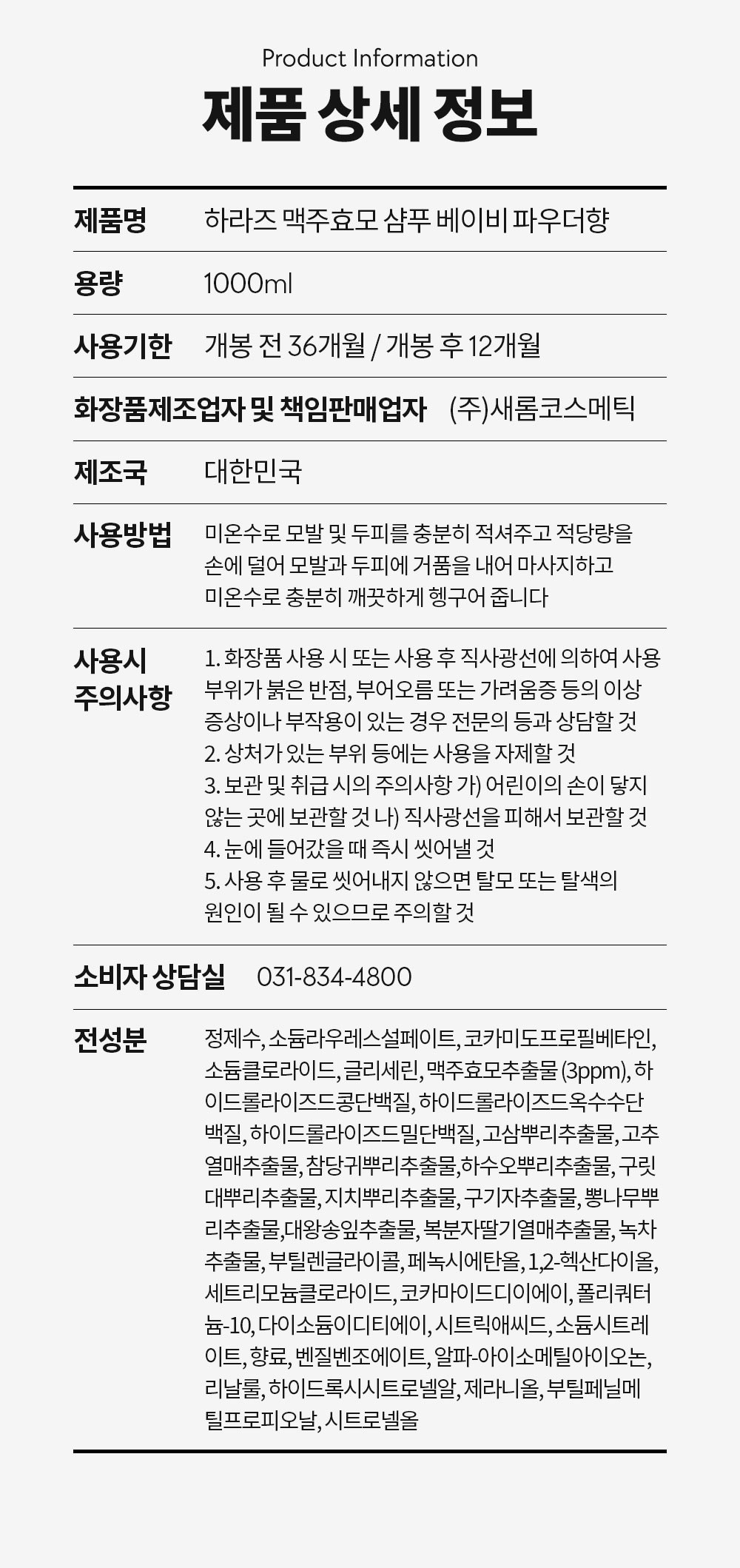 | 용량(중량) | 1000ml | 제품 주요 사양 | 모든 모발용 |