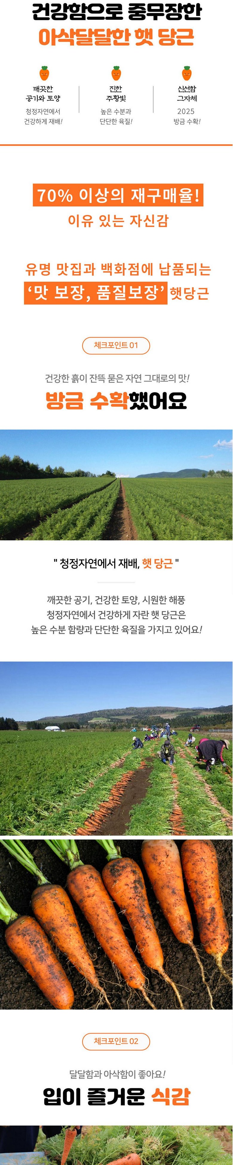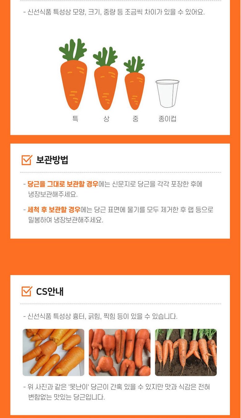 | 품목 또는 명칭 | 재구매율높은 국내산 제주 햇 당근 | 포장단위별 내용물의 용량(중량),수량,크기 | 2kg,5kg,10kg |