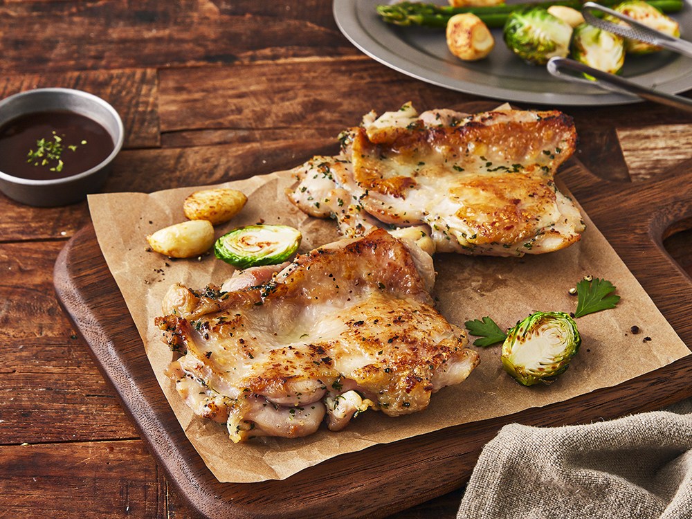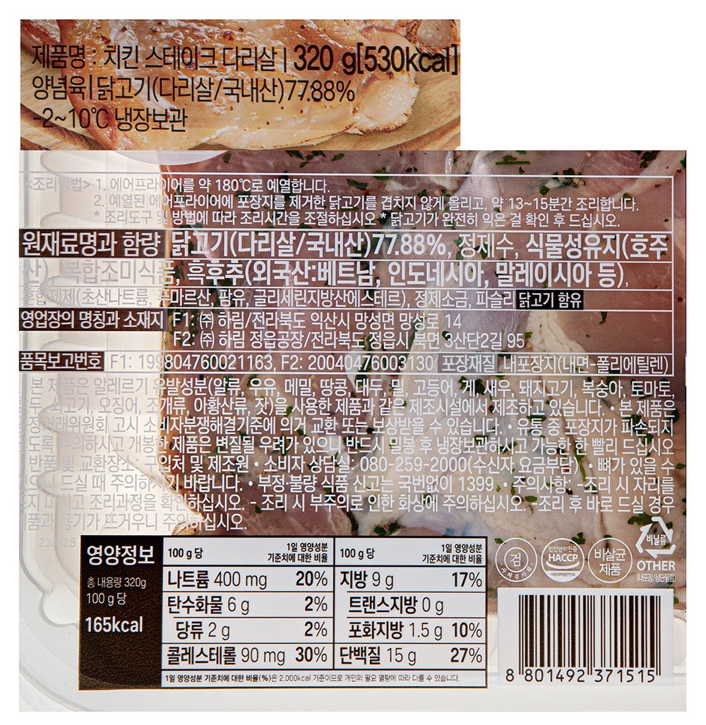 큼직하고 두툼한 치킨 스테이크예요. 닭다리살로 만들어 쫄깃쫄깃하면서도 부드러운 식감이 일품이죠. 흑후추와 파슬리가 뿌려져 있어 향긋한 감칠맛을 만끽할 수 있답니다. 에어프라이어로 손쉽게 조리해, 노릇노릇 윤기가 흐르는 치킨 스테이크를 즐겨보세요.