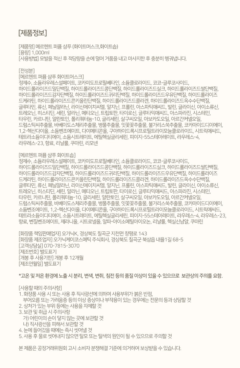 | 용량(중량) | 1000ml | 제품 주요 사양 | 모든모발용 |