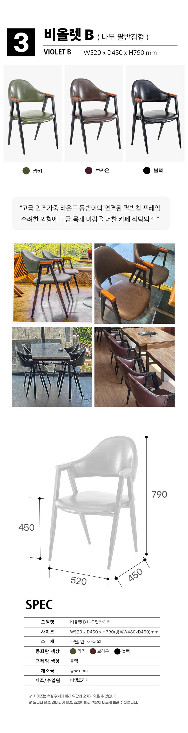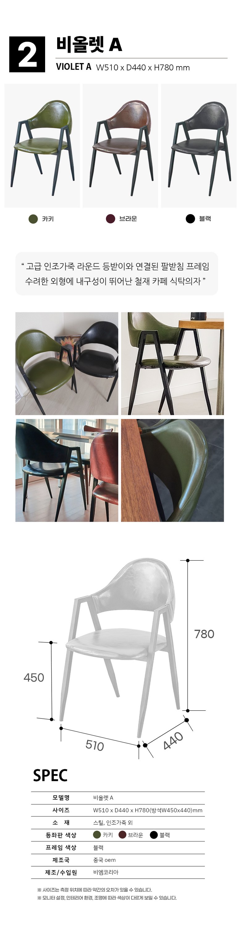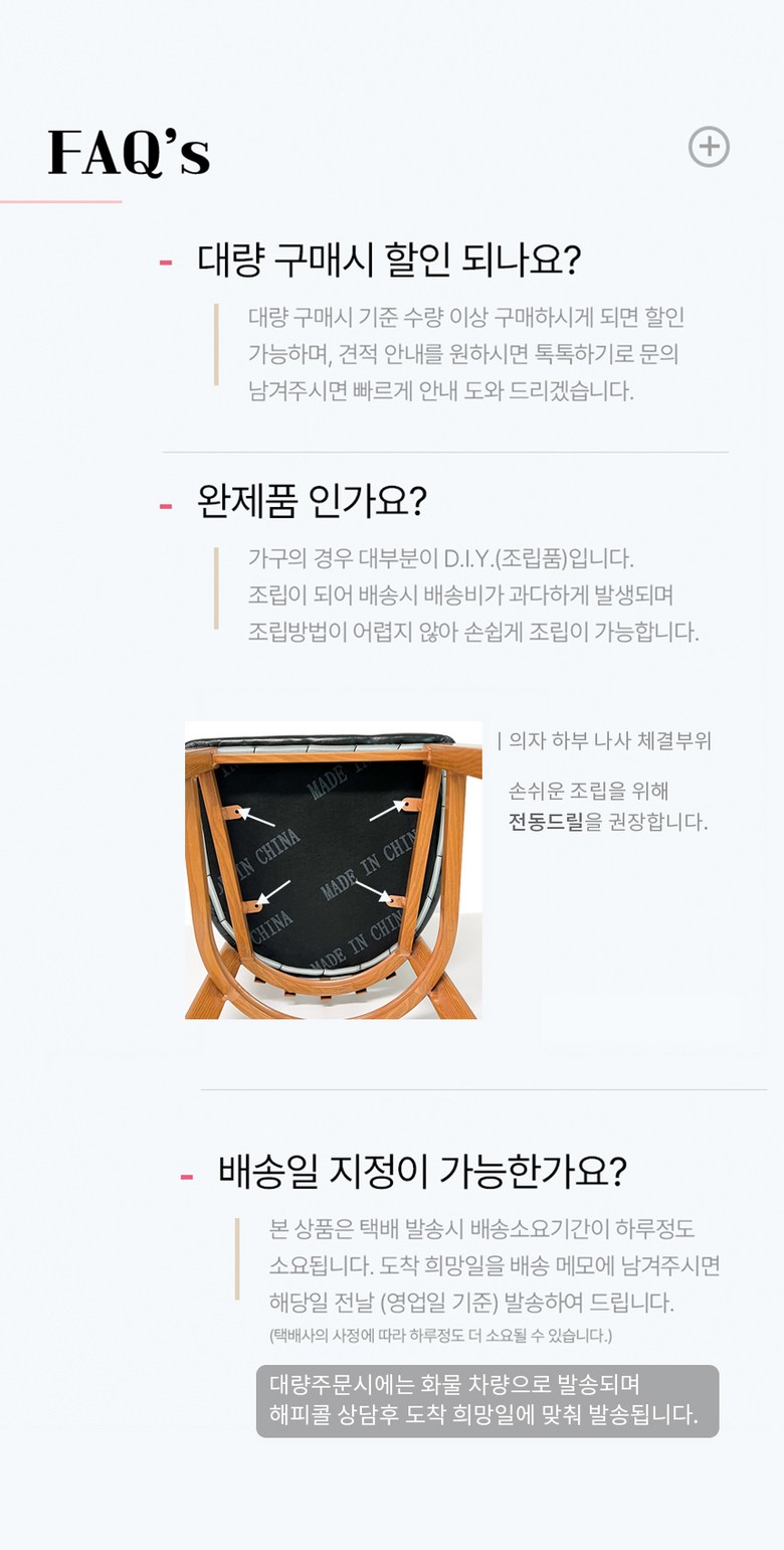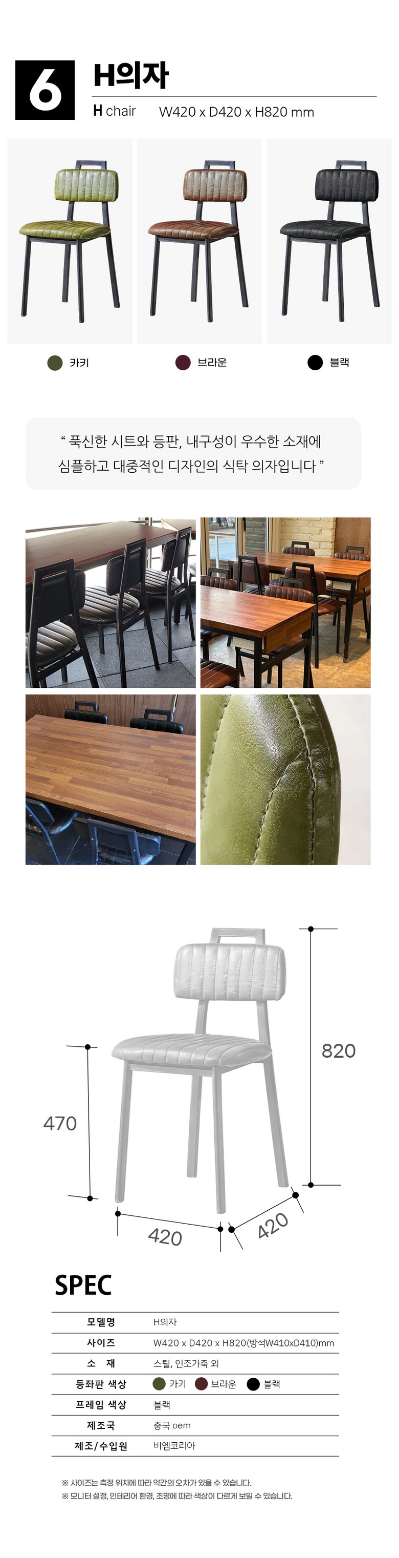 | 색상 | 카키,브라운,블랙,엔틱,내츄럴 등 | 구성품 | 의자 본품 1ea |