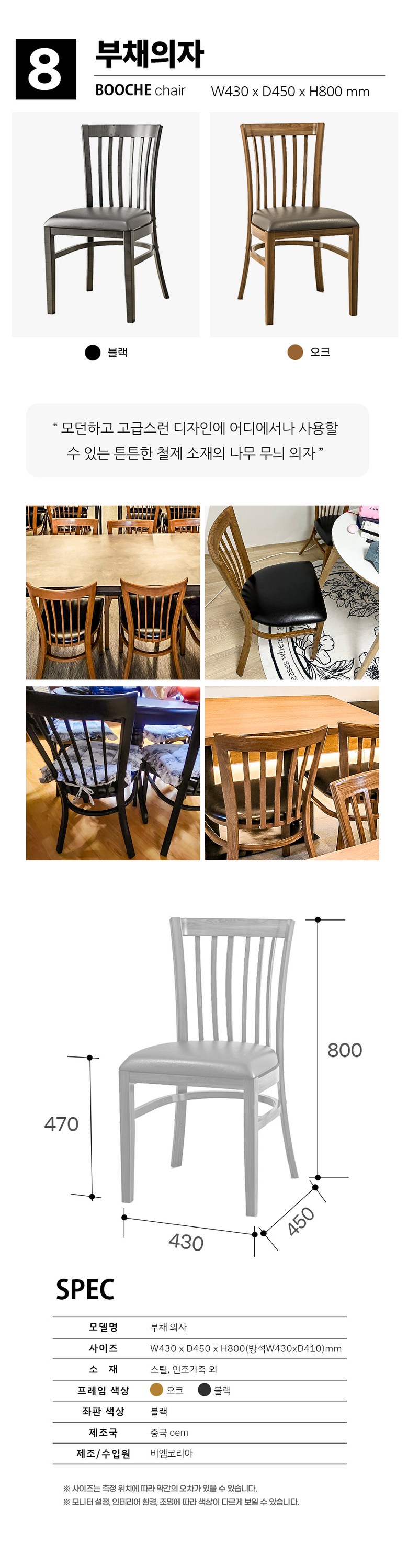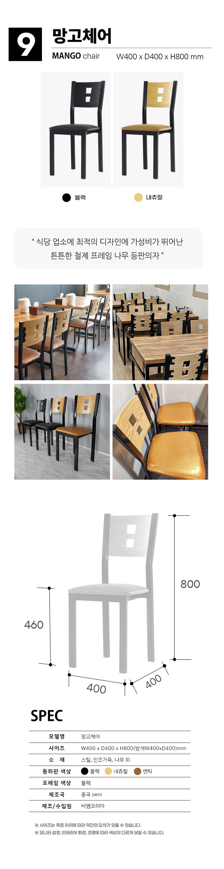 | 품명 | 식당 업소 인테리어 의자 식탁의자 | KC 인증정보 | 해당사항없음 |