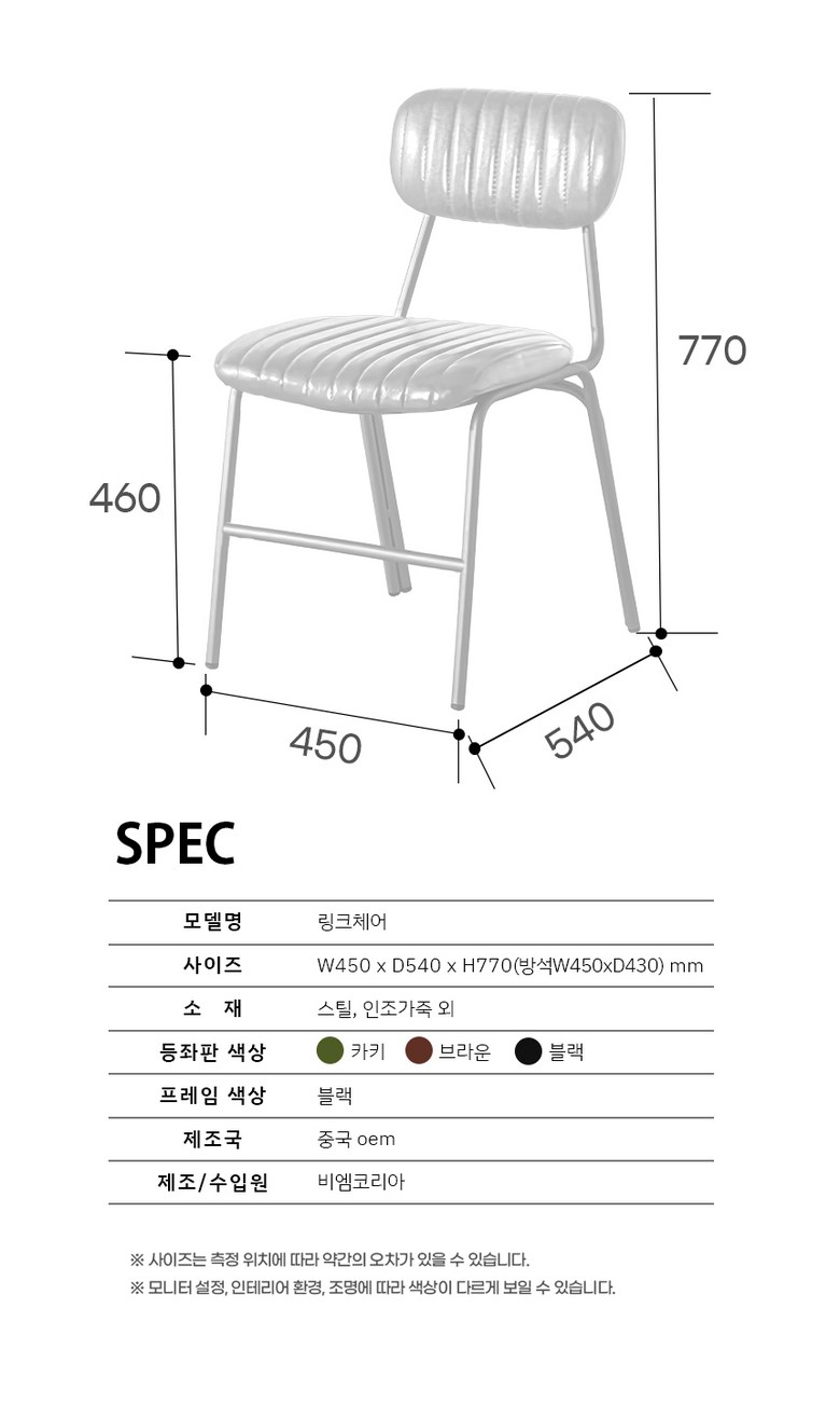 | 주요 소재 | 인조가죽, 스틸 | 제조자(수입자) | 비엠코리아 |