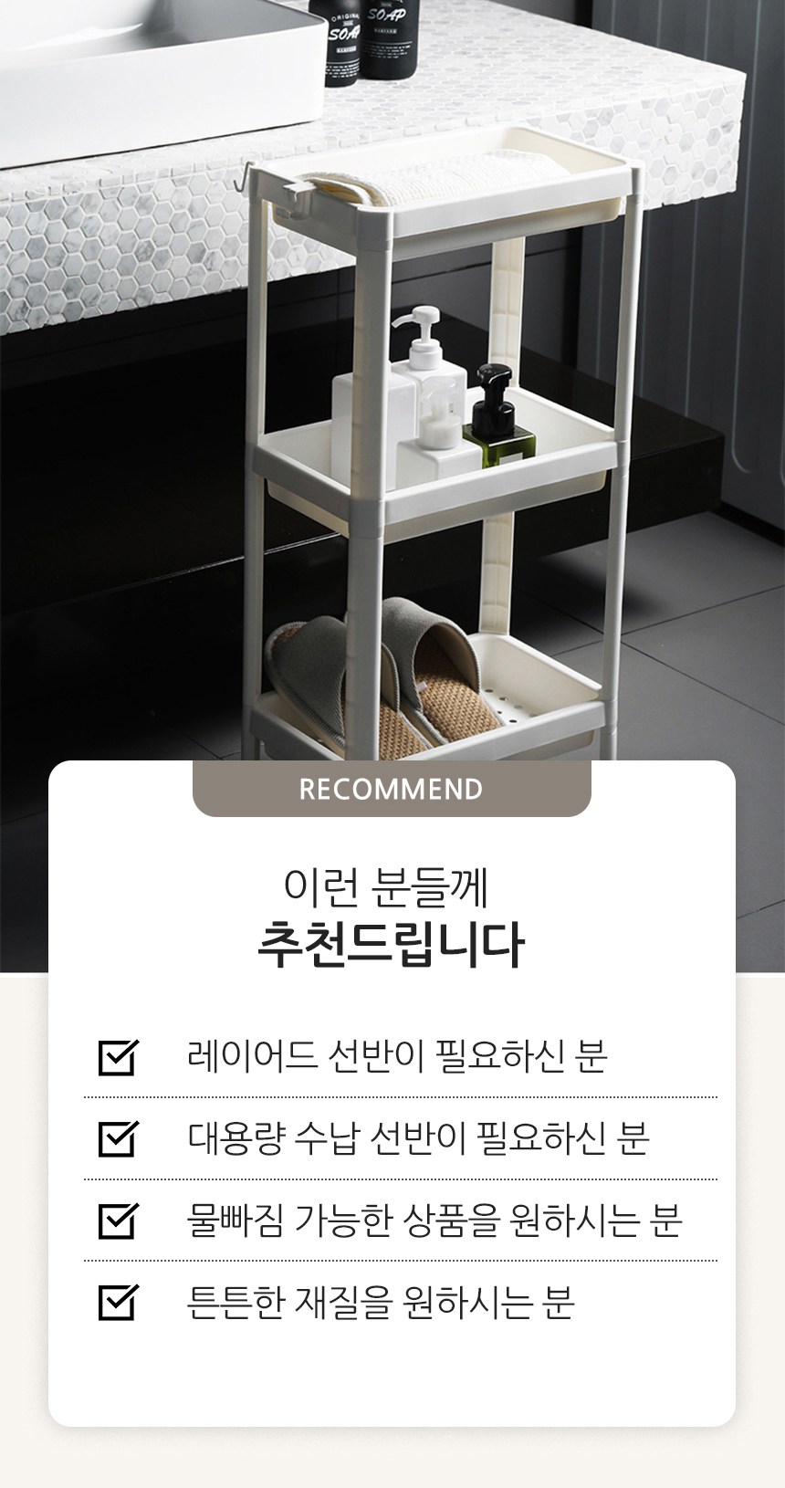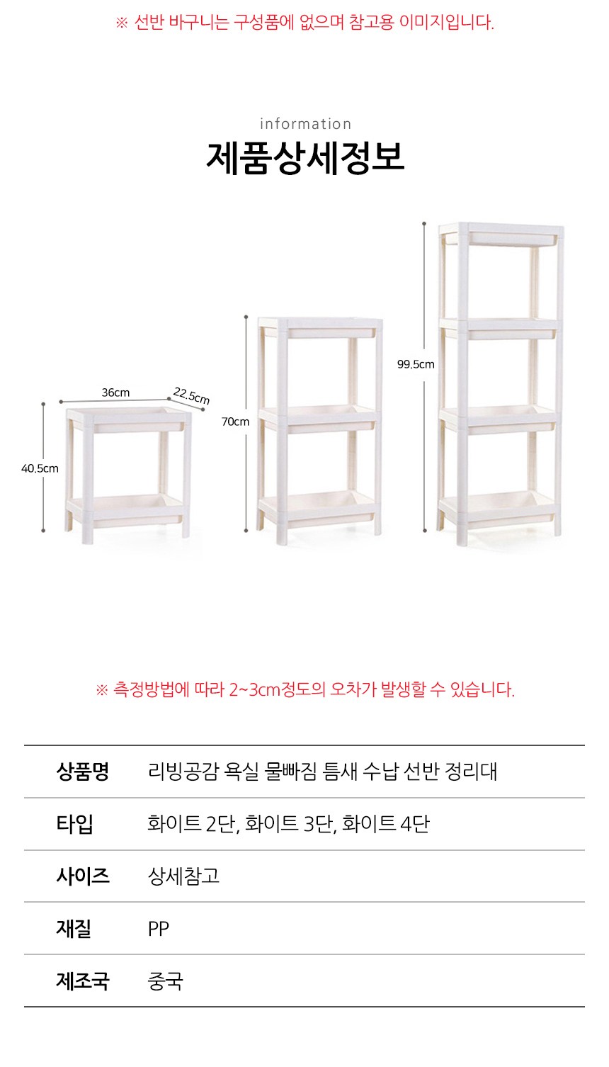 | 품명 및 모델명 | 리빙공감 욕실 물빠짐 틈새 수납 선반 정리대 | 인증/허가 사항 | 해당없음 |