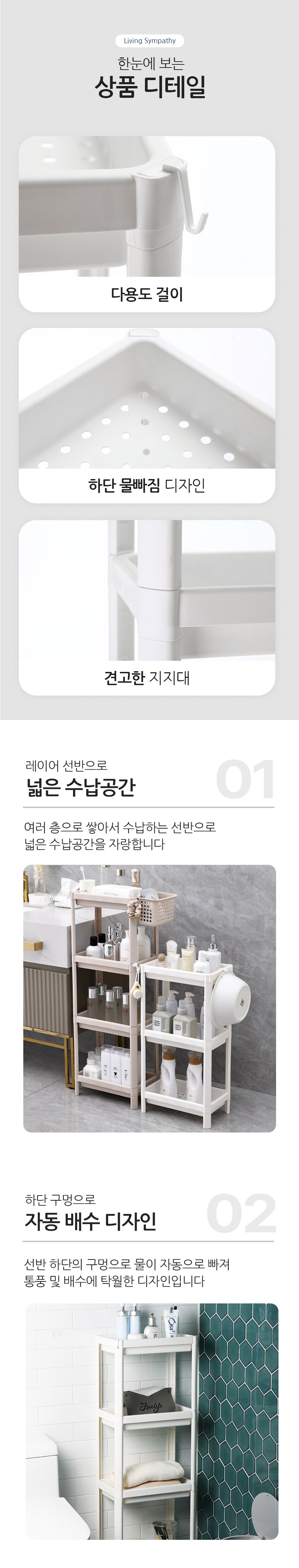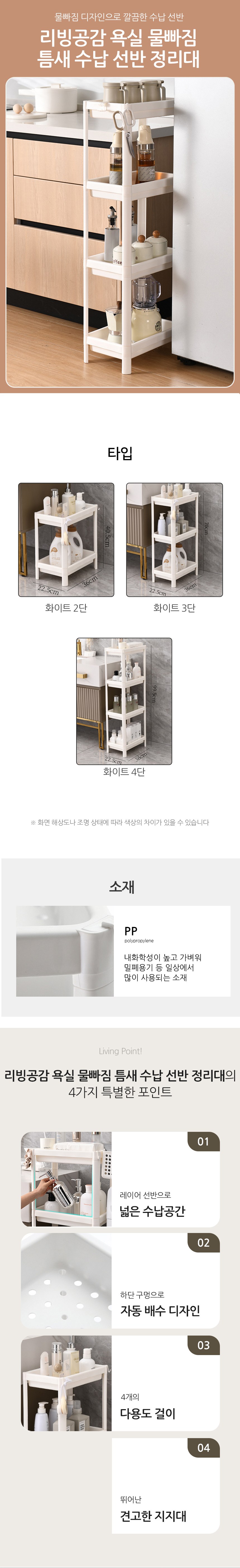 리빙공감 욕실 물빠짐 틈새 수납 선반 정리대 4단