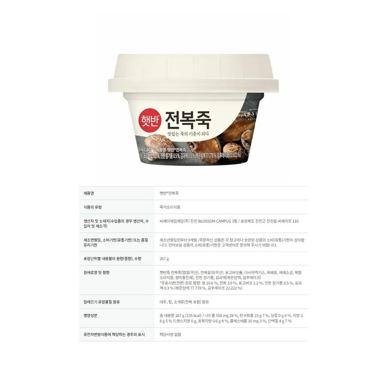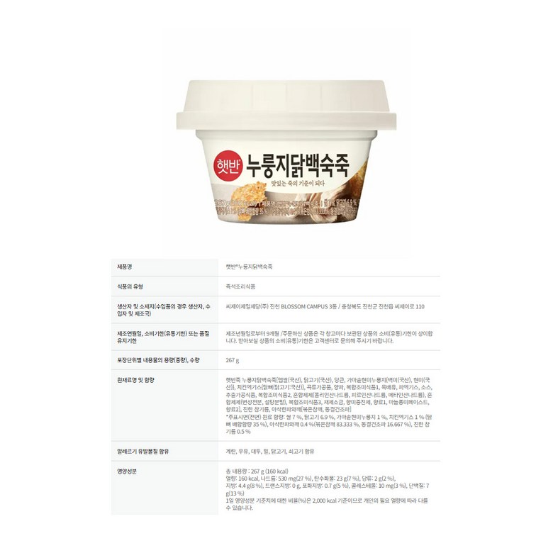 | 생산자 및 소재지 | 상품 상세페이지 참조 | 제조연월일, 소비기한 또는 품질유지기한 | 상품 상세페이지 참조 |