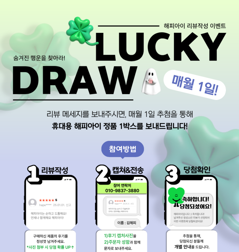 | 교환/반품 신청 기준일 | ㆍ단순변심에 의한 교환/반품은 제품 수령 후 7일 이내까지, 교환/반품 제한사항에 해당하지 않는 경우에만 가능 (배송비용과 교환/반품 비용 왕복배송비 고객부담) ㆍ상품의 내용이 표시·광고의 내용과 다른 경우에는 상품을 수령한 날부터 3개월 이내, 그 사실을 안 날 또는 알 수 있었던 날부터 |