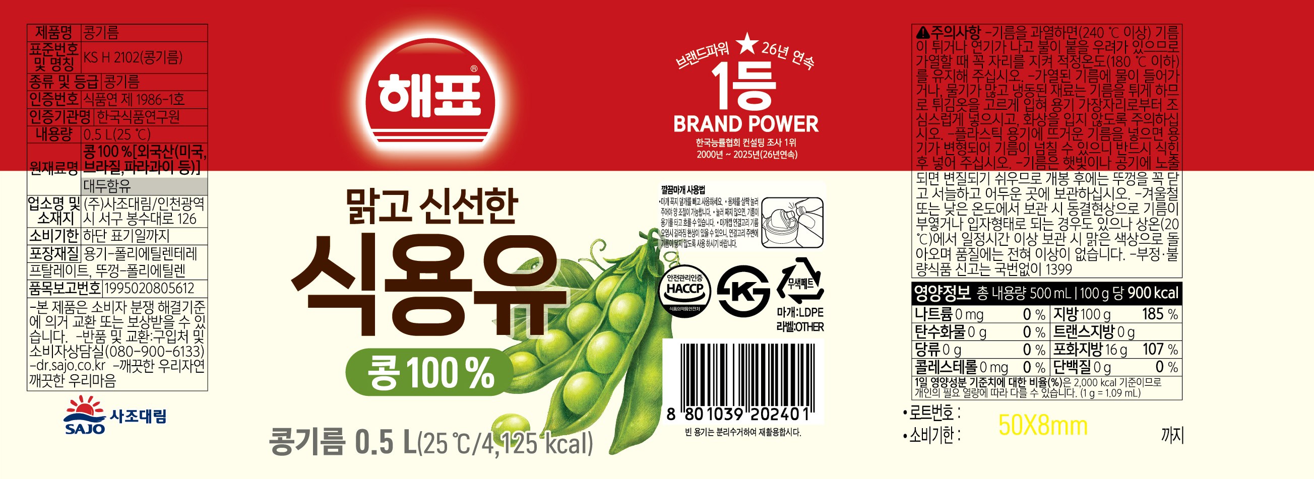 - 종류: 콩기름/대두유