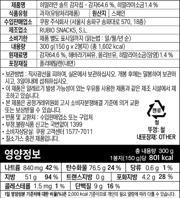| 포장단위별 내용물의 용량(중량), 수량 | 300g, 2개 | 원재료명 및 함량 | 컨텐츠 참조 |