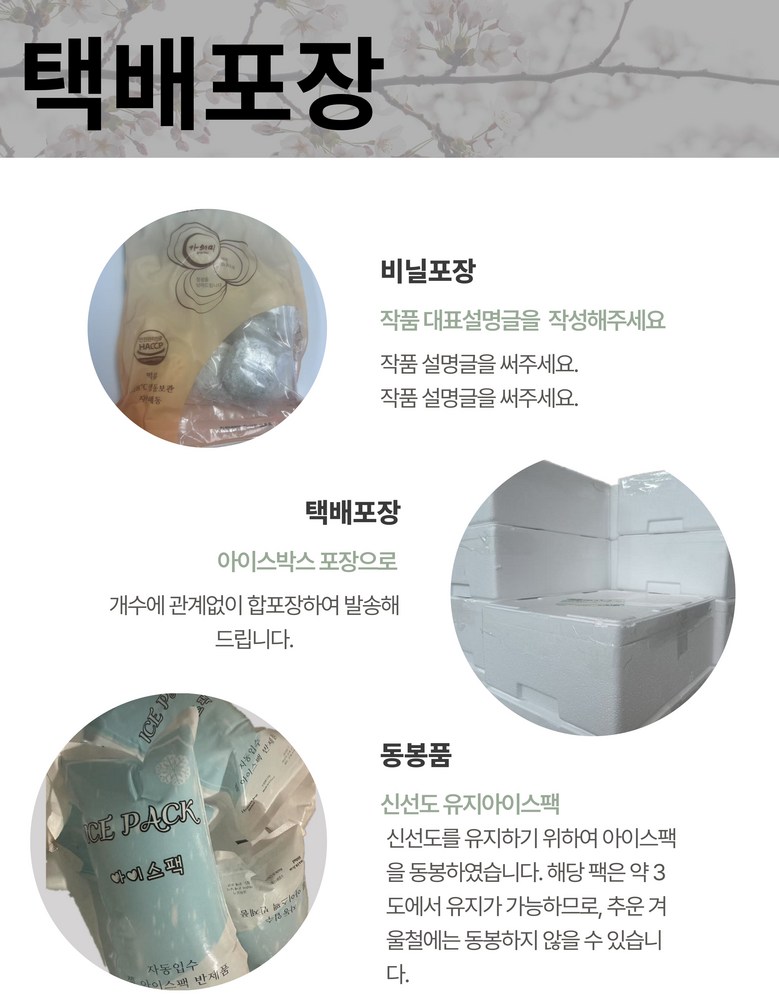 | 배송방법 | 신선/냉장/냉동 | 배송비 | 무료배송 - 도서산간 지역 배송불가 |