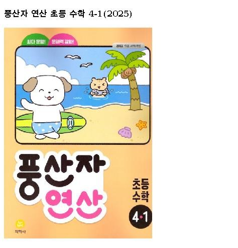 | 품명 및 모델명 | 풍산자 연산 초등 수학 4-1 (2025) | KC 인증정보 | 유/KC마크 |