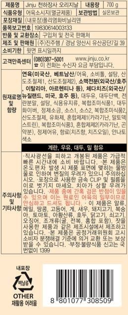 | 포장단위별 내용물의 용량(중량), 수량 | 700g, 1개 | 원재료명 및 함량 | 컨텐츠참조 |