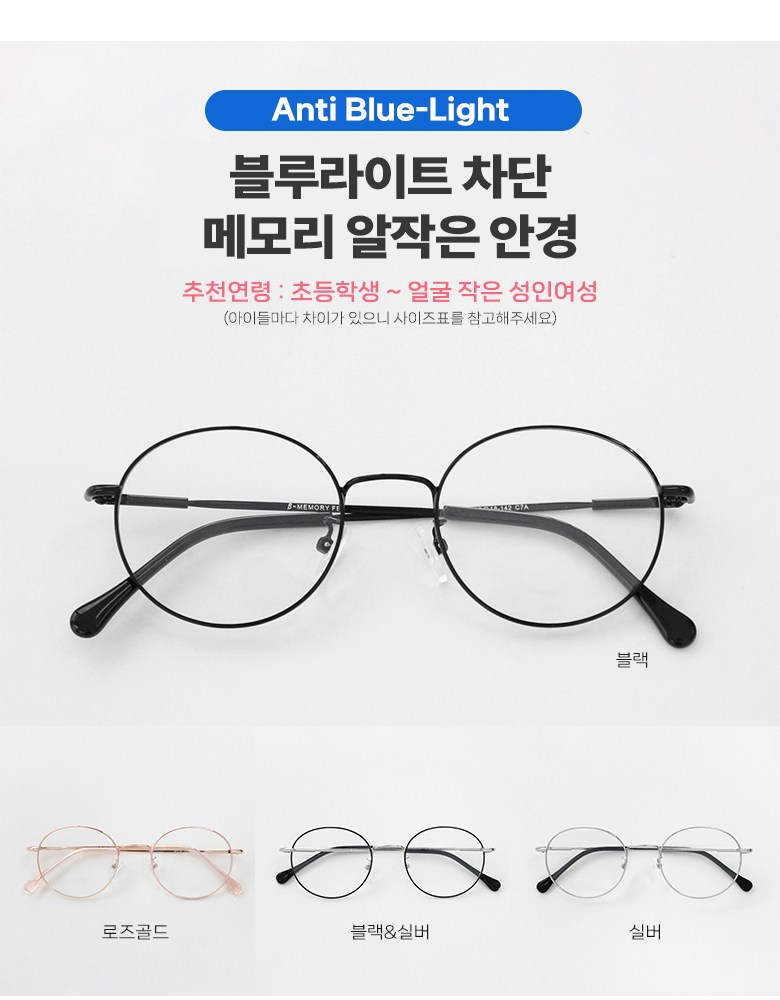 블루라이트차단 소두 안경 동글이 메탈 48 베타메모리 작은 사이즈