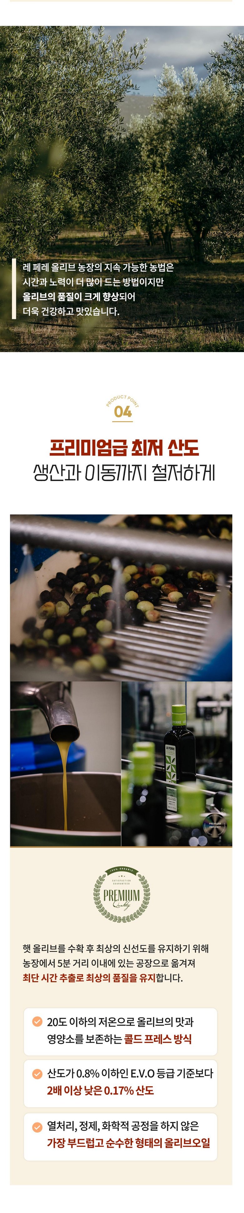 프리미엄 고품질 올리브오일이 생산됩니다.