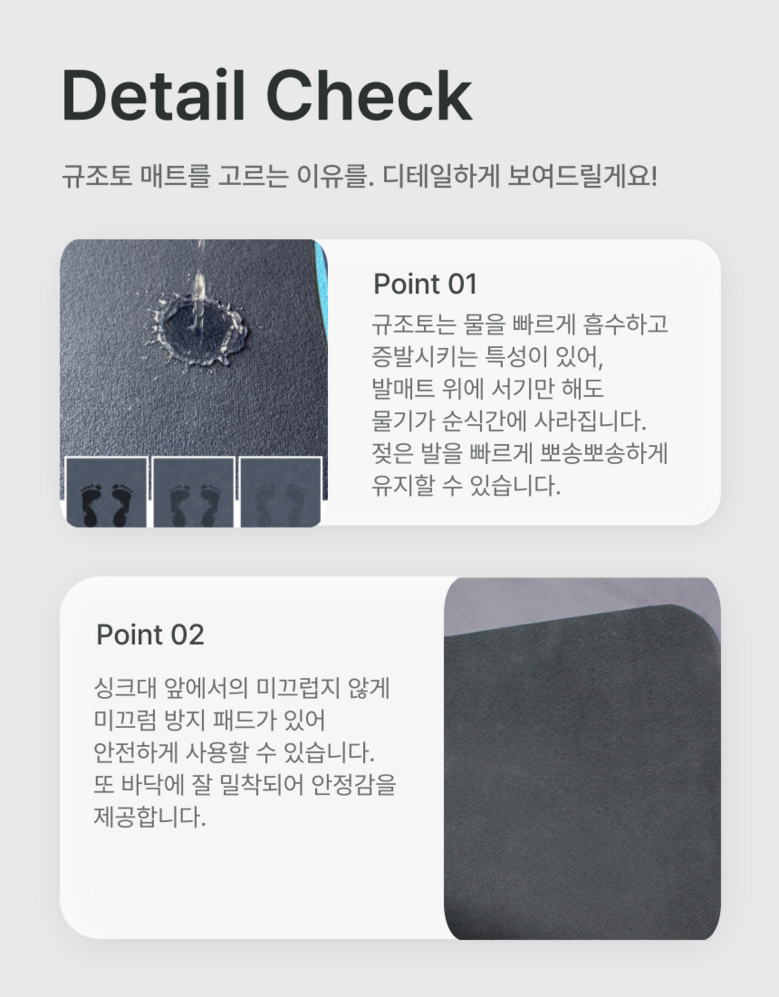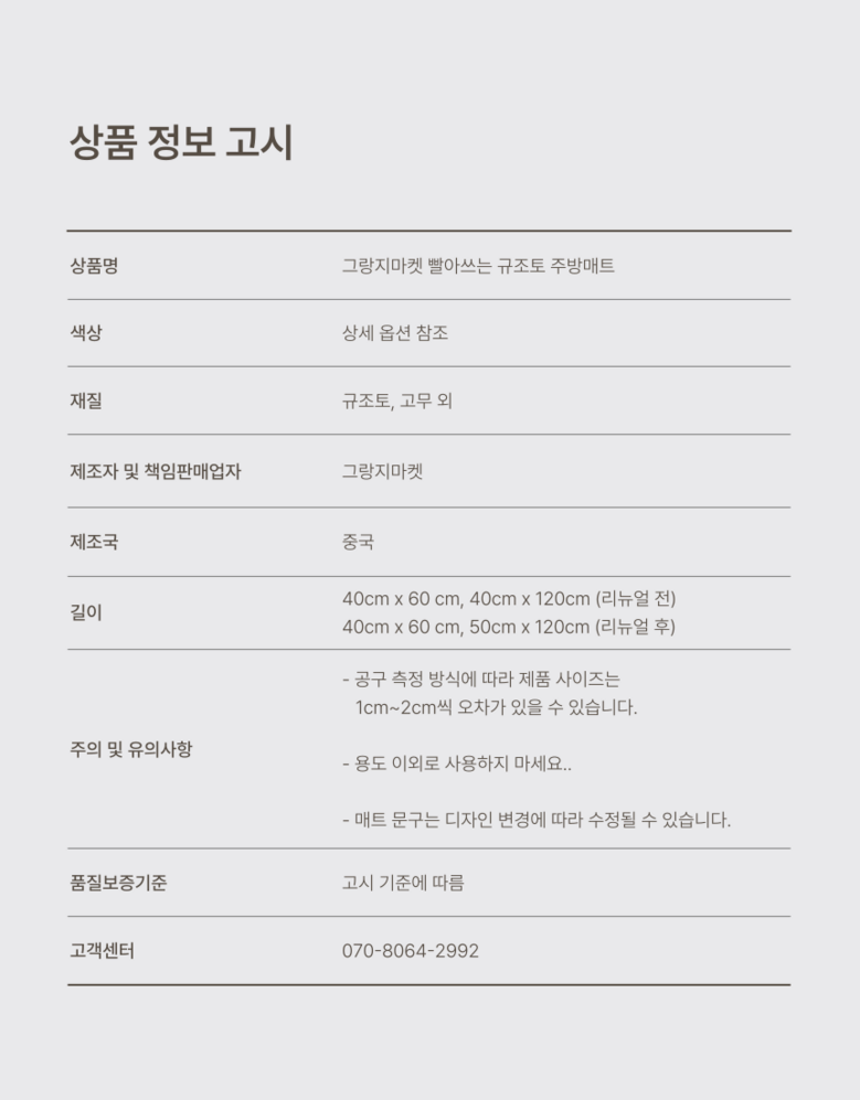 | 품명 및 모델명 | 그랑지마켓 규조토 주방매트 + 발매트 2종 세트 | 재질 | 규조토 |