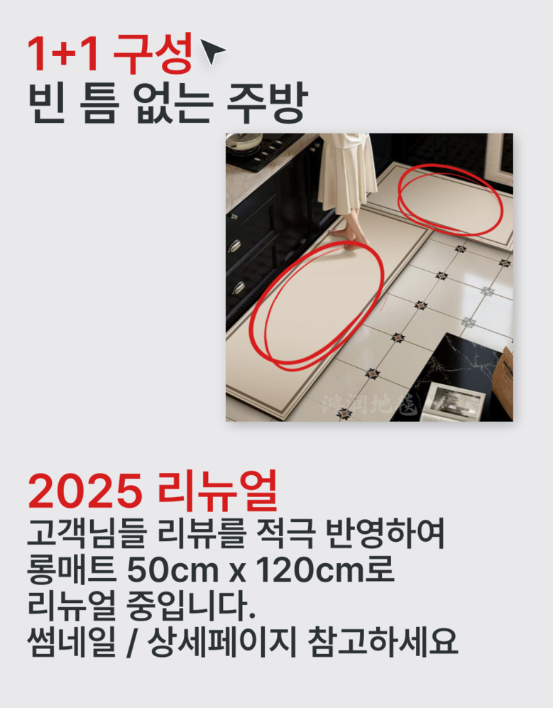| 구성품 | 주방매트 + 발매트 | 크기 | 40 x 60cm, 40 x 120cm |