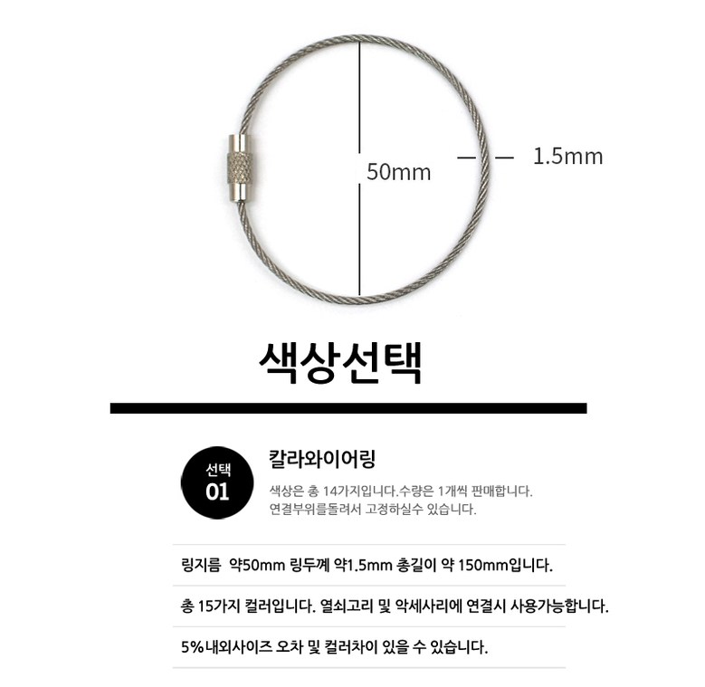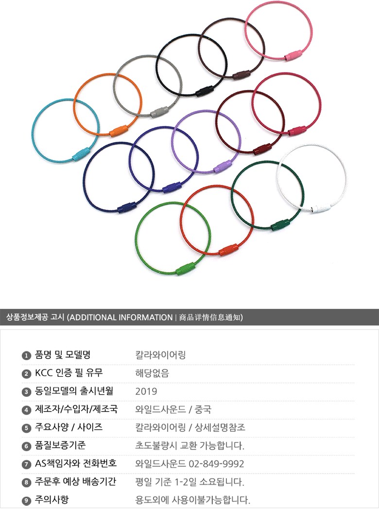 | 품명 및 모델명 | 칼라와이어키링재질:금속상품유형:열쇠고리키링사용기준: 14세이상사용가능합니다. | 인증/허가 사항 | 해당사항없음 |