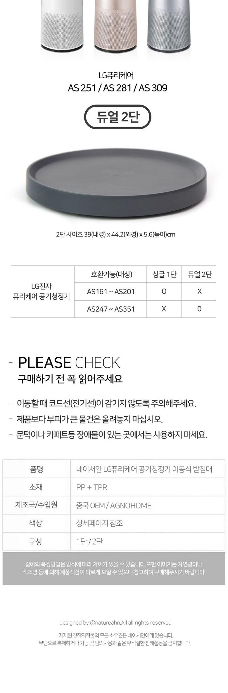 | 품명 및 모델명 | LG퓨리케어 공기청정기받침대 싱글 1단 | 인증/허가 사항 | 해당없음 |