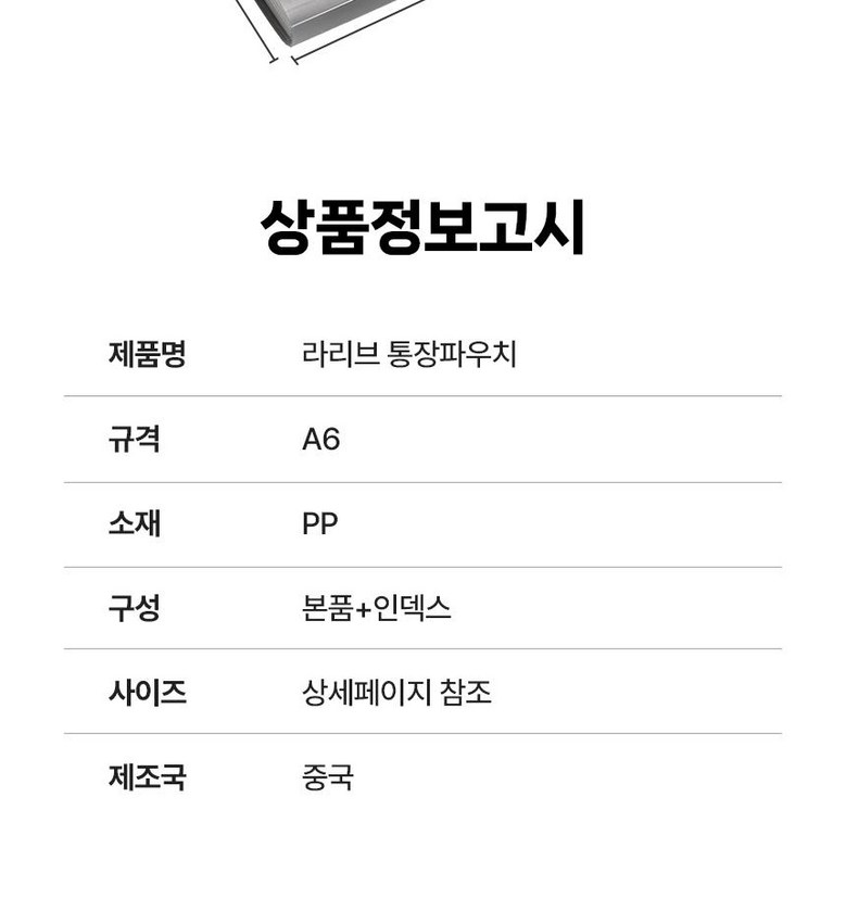 | 품명 및 모델명 | 통장케이스 | 인증/허가 사항 | 해당사항없음 |