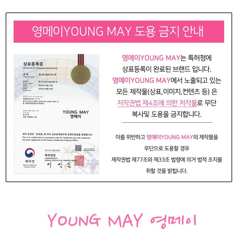 | 치수 | 상품 상세페이지 참조 | 제조자(수입자) | 영메이 협력업체 |