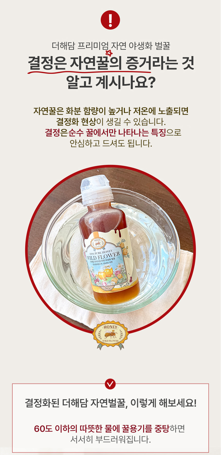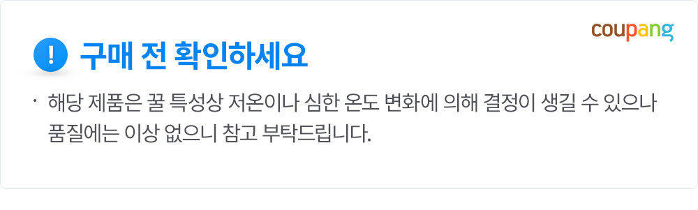| 품목 또는 명칭 | 프리미엄 야생화 벌꿀 100% | 포장단위별 내용물의 용량(중량),수량,크기 | 500g, 1개 |