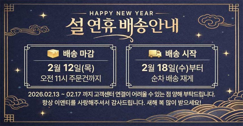 | 교환/반품 신청 기준일 | ㆍ단순변심에 의한 교환/반품은 제품 수령 후 7일 이내까지, 교환/반품 제한사항에 해당하지 않는 경우에만 가능 (배송비용과 교환/반품 비용 왕복배송비 고객부담) ㆍ상품의 내용이 표시·광고의 내용과 다른 경우에는 상품을 수령한 날부터 3개월 이내, 그 사실을 안 날 또는 알 수 있었던 날부터 |