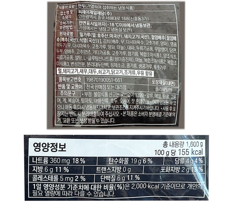 | 제품명 | 상세정보 별도표기 | 식품의 유형 | 상세정보 별도표기 |