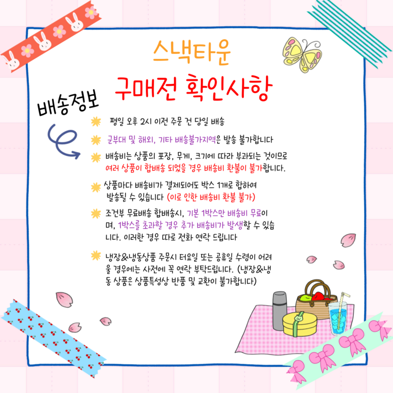 | 배송방법 | 순차배송 | 배송비 | 무료배송 - 도서산간 지역 배송불가 |