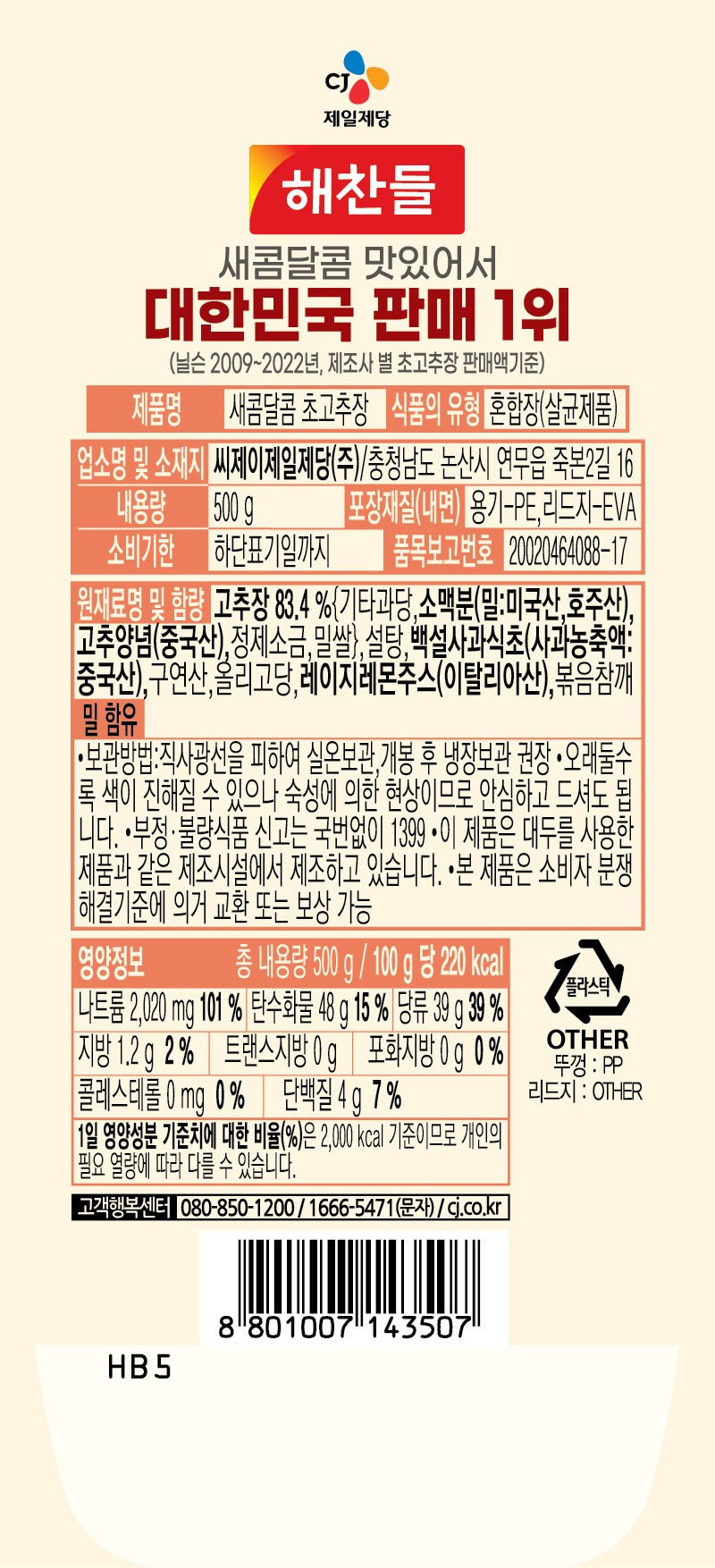 | 제품명 | 새콤달콤 초고추장 | 식품의 유형 | 컨텐츠참조 |