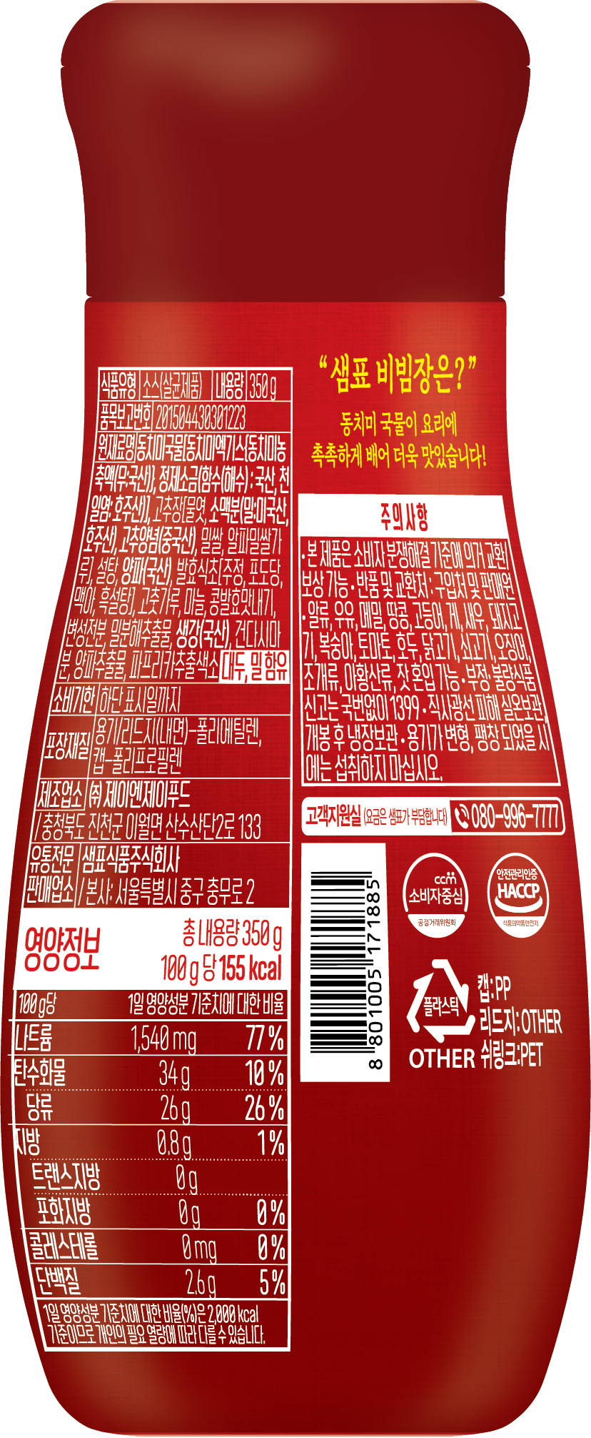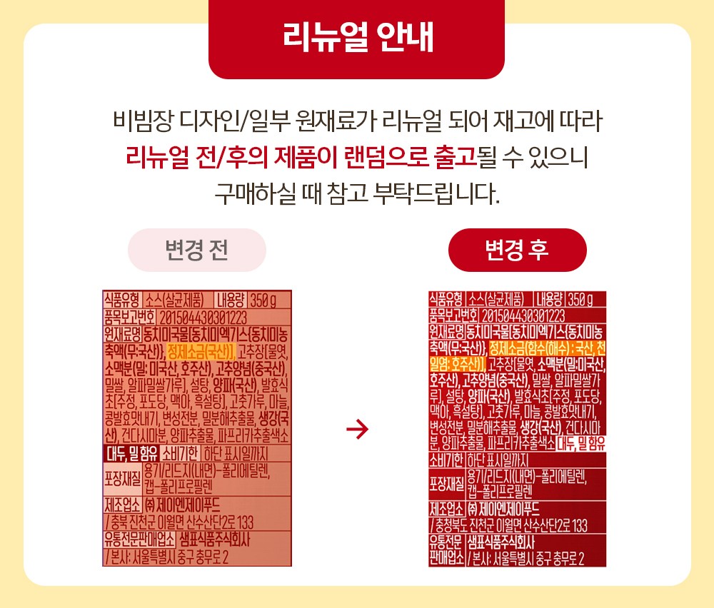 | 제품명 | 샘표 비빔장 | 식품의 유형 | 컨텐츠 참조 |