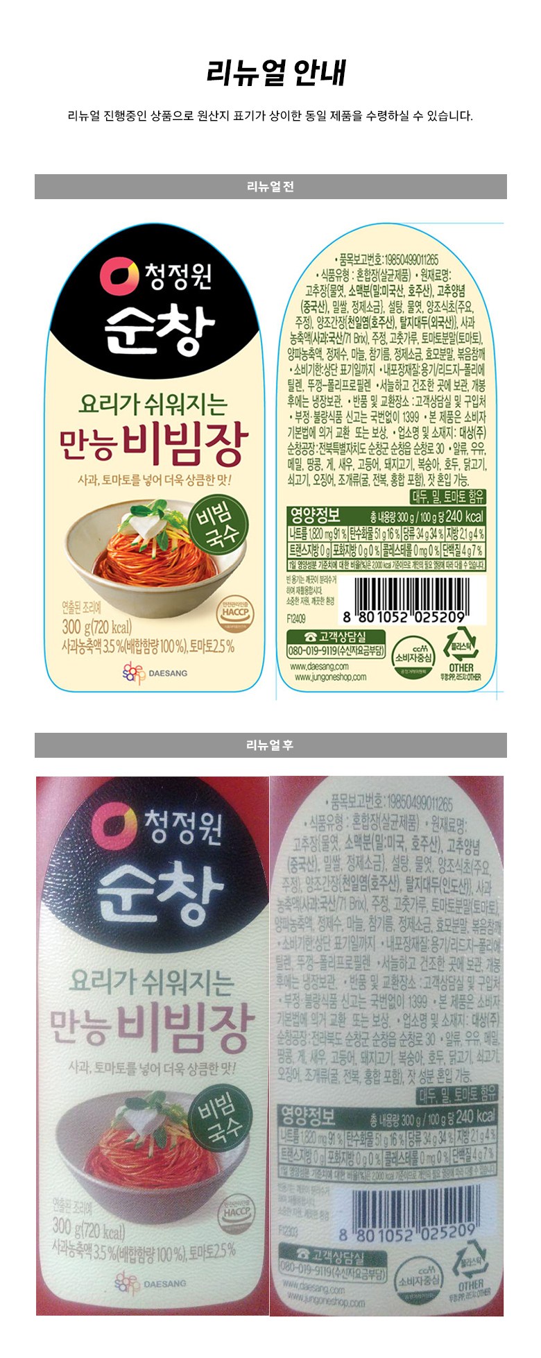 | 제품명 | 요리가쉬워지는 만능비빔장 | 식품의 유형 | 컨텐츠 참조 |