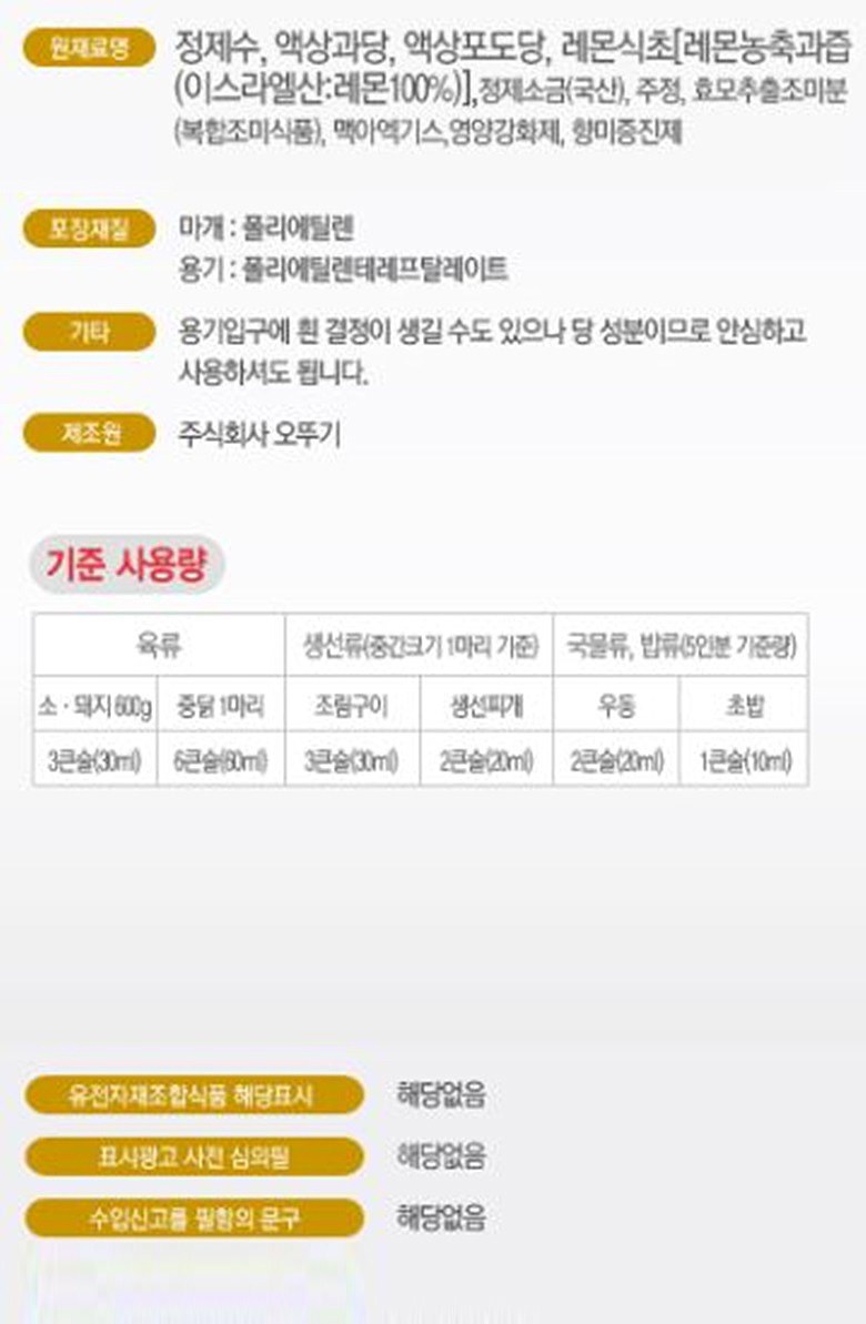 | 제품명 | 오뚜기 미향 | 식품의 유형 | 소스(살균제품) |