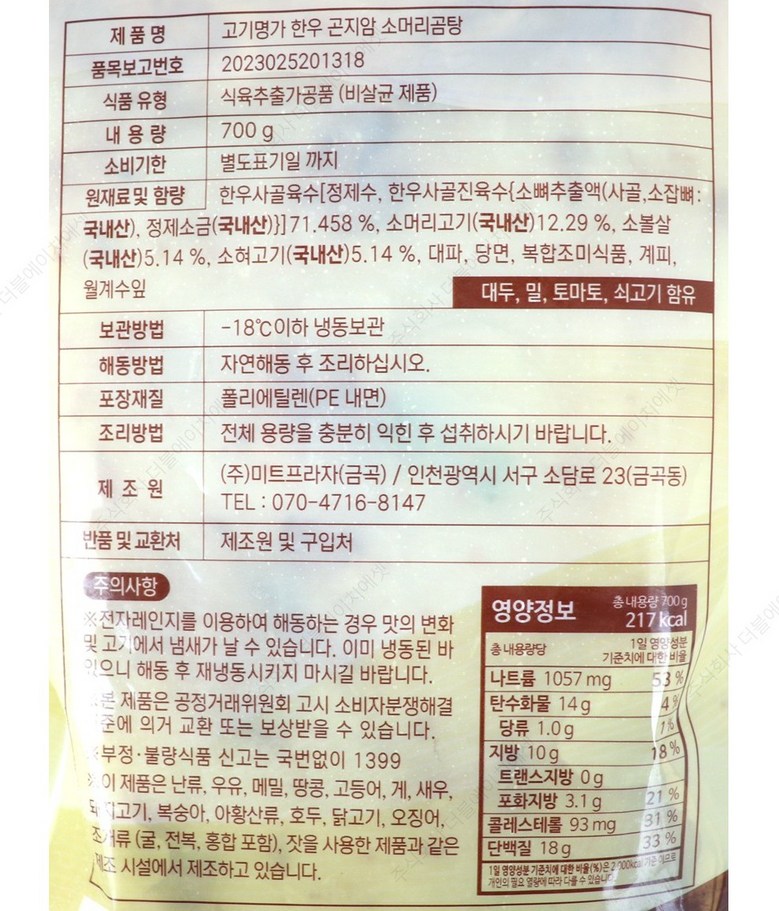 | 제품명 | 상품 상세페이지 참조 | 식품의 유형 | 상품 상세페이지 참조 |
