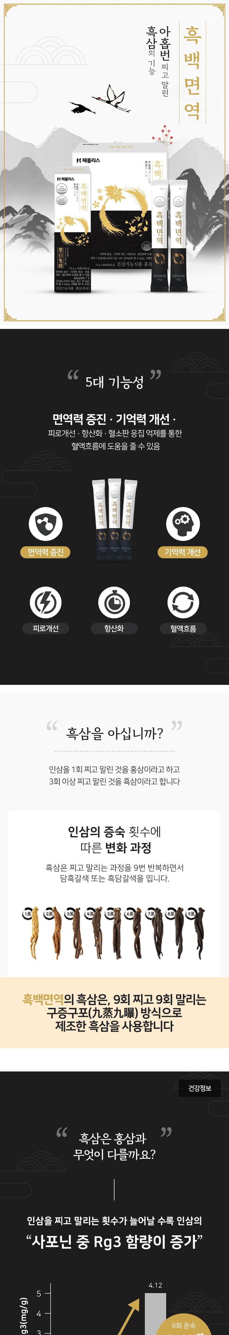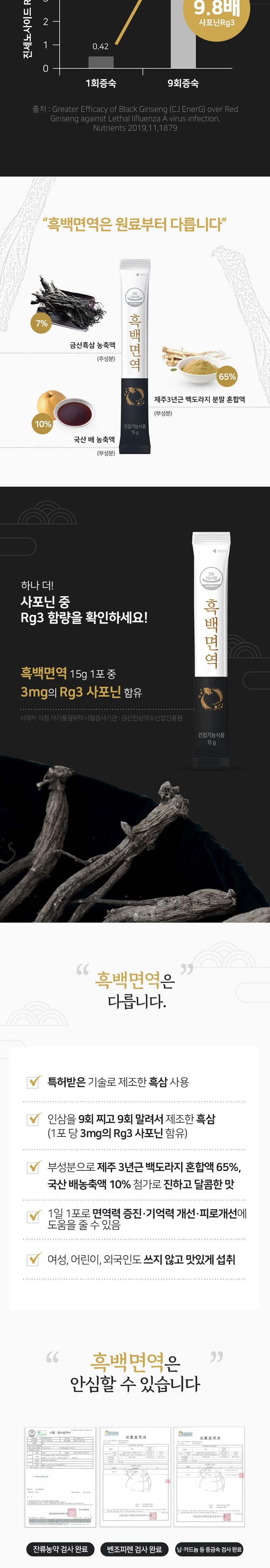 면역력증가 기억력개선 피로회복 흑백면역 10포 구증구포 금산흑삼(홍삼)과 제주3년근 백도라지