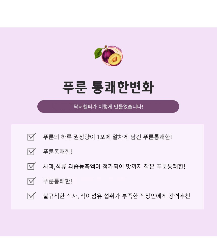 | 제품명 | 푸룬통쾌한변화 | 식품의 유형 | 컨텐츠 참조 |