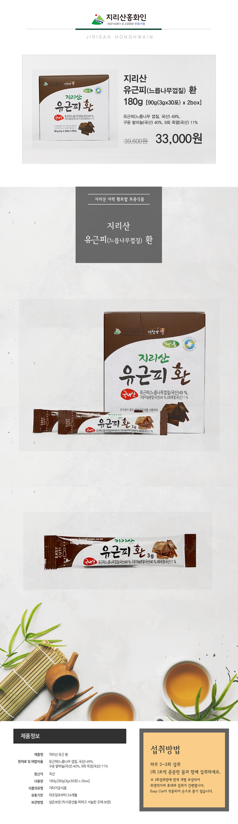지리산 유근피 환 30포 X 2개 자연산 느릅나무 껍질, 90g, 2개