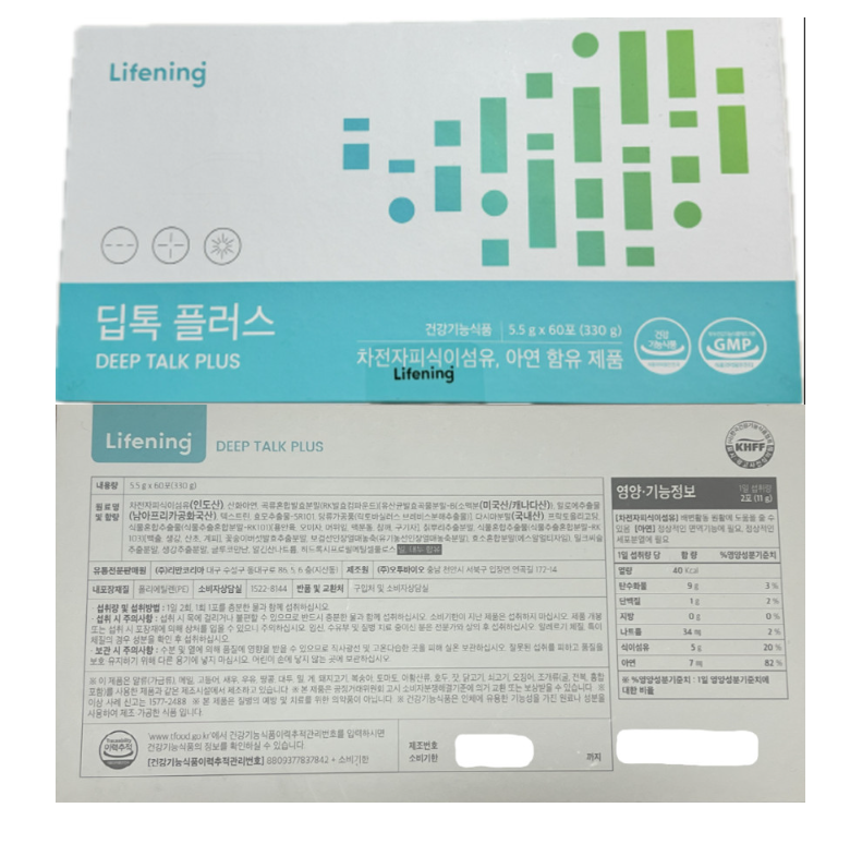 | 제품명 | 라이프닝 딥톡플러스 | 제조업소의 명칭과 소재지 | [유통전문판매원] (주)리만코리아 대구 수성구 동대구로86, 5, 6층(지산동)[제조원] (주)오투바이오 충남 천안시 서북구 입장면 연곡길 172-14 |