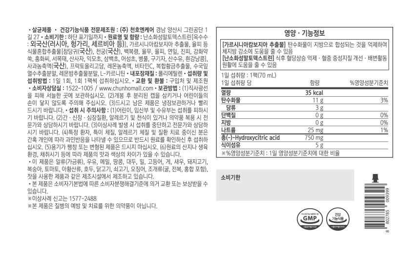 - 건강기능식품: 인증 있음
