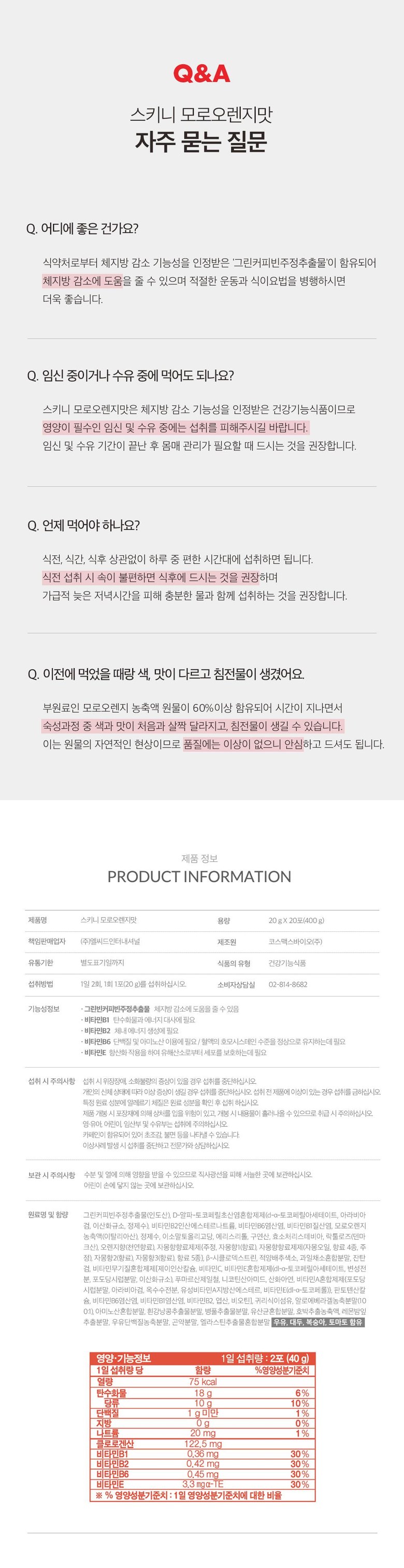 | 원료명 및 함량 | 상품 상세페이지 참조 | 영양정보 | 상품 상세페이지 참조 |